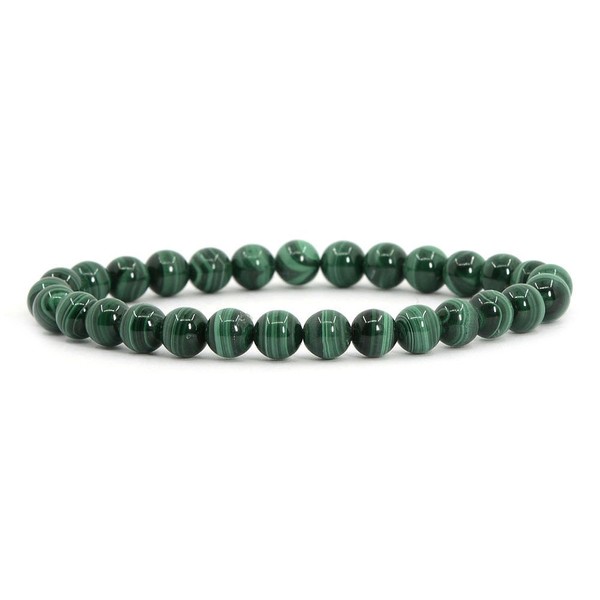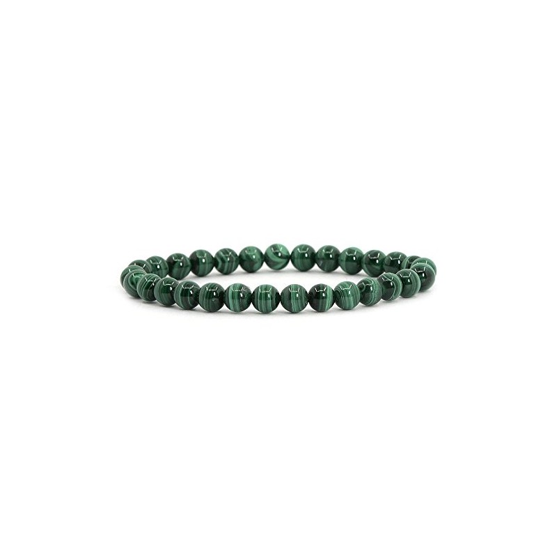 Natural Malachite Gemstone 6mm Round Beads Stretch Bracelet 6.5"