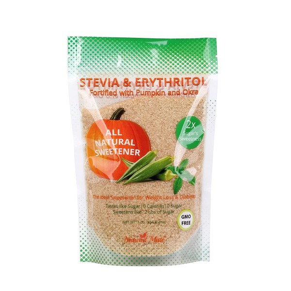 Natural Mate Stevia and Erythritol Sweetener Blend with Veggie Nutrients from Pumpkin and Okra (16oz / 1Lb) - All Purpose Granular Natural Sugar Replacement - Pure Sweet Taste, Zero Calories