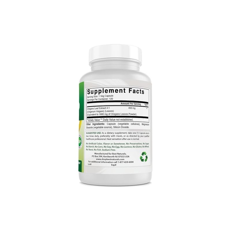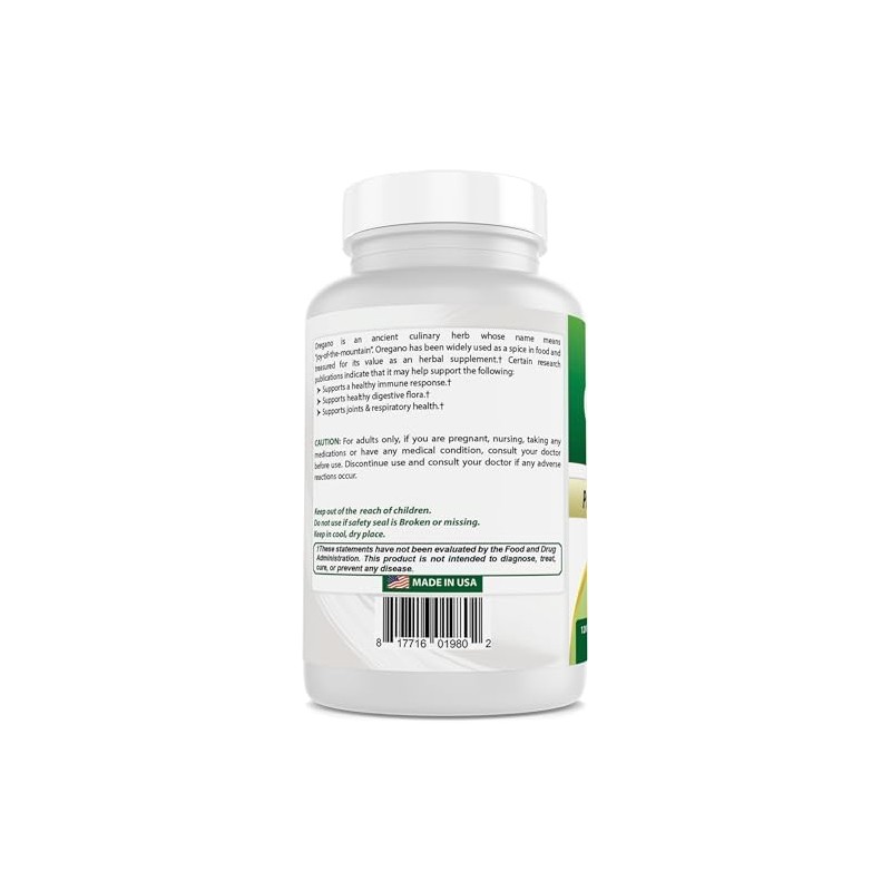 - 1800 mg of Equivalent Oregano Leaf per Serving - 120 Capsules per Bottle.