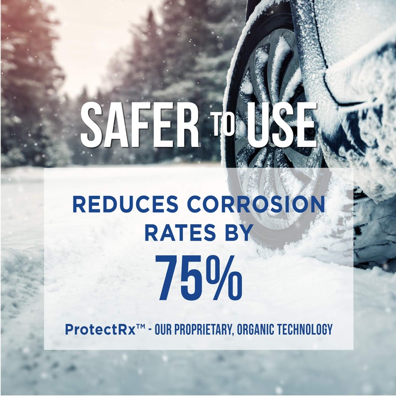 - SAFER FOR CONCRETE, METAL, AND WOOD - ProtectRx, our proprietary, organic technology, reduces corrosion rates by up to 75% compared to regular ice melters and rock salt. It is safer for your vehicles, equipment, and other surfaces.