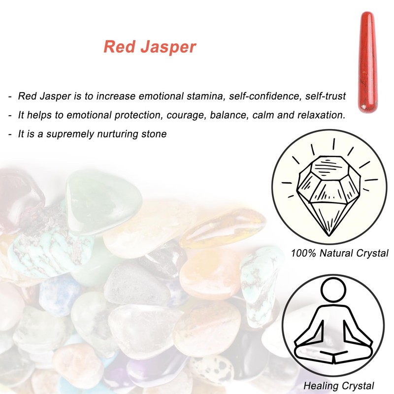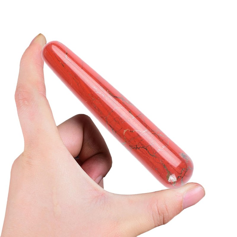 - NATURAL - You will receive 1 piece of natural red jasper crystal massage stick and a velvet bag. Made of 100% natural and genuine gemstones, manually carved and polished without chemical treatment or waxing.