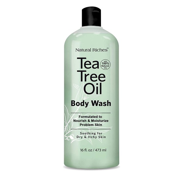 - Body Wash Enriched With Potent Combination of Tea tree, Jojoba, Coconut, Rosemary, Olive, Oregano, Peppermint, Aloe and Eucalyptus Oils. natural ingredients (no harmful chemicals). No preservatives, thickeners or detergents. Contains vitamins A, B1, B2, C, D and E. Soothes and heals itchy inflamed skin. Made in USA (not tested on animals).