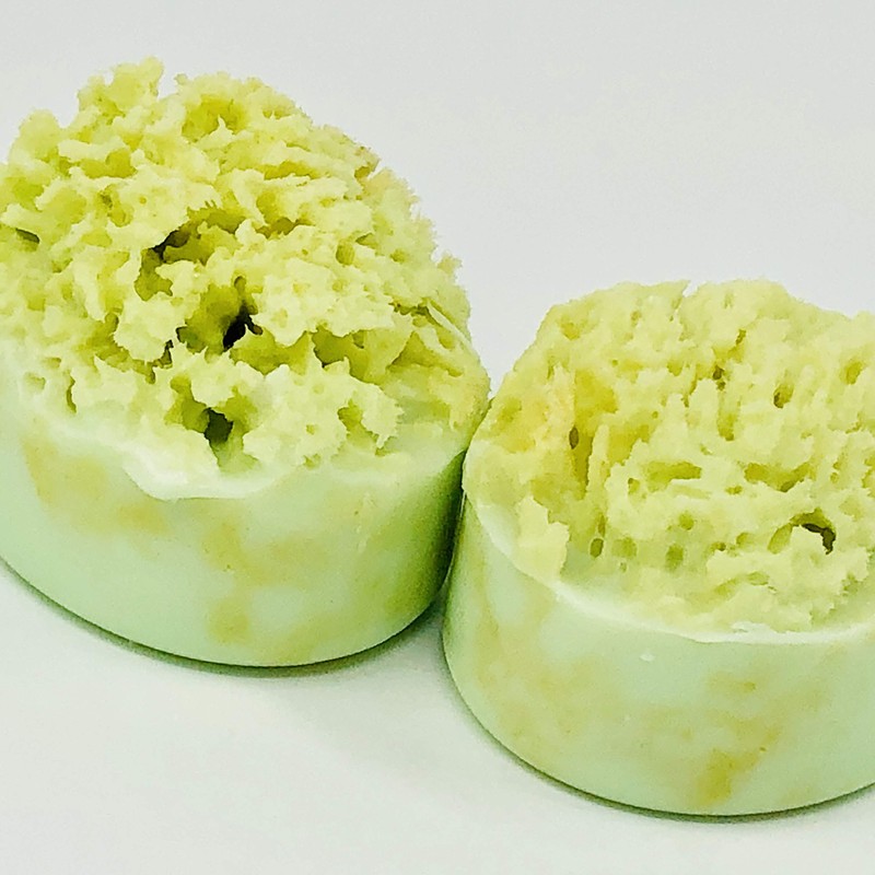 Natural sea sponge soap Handmade, bamboo lemon scented 3 oz oval bar