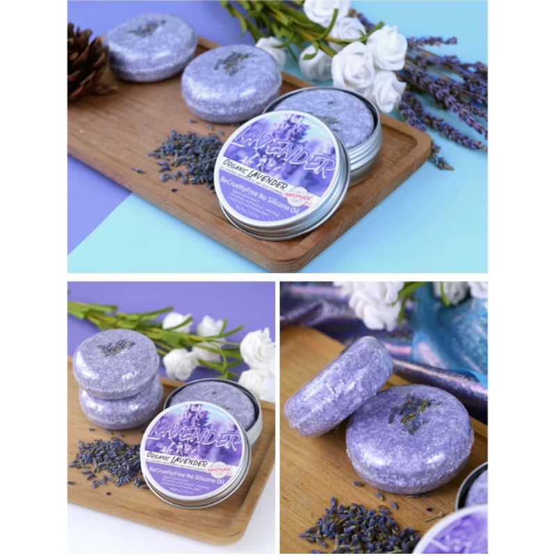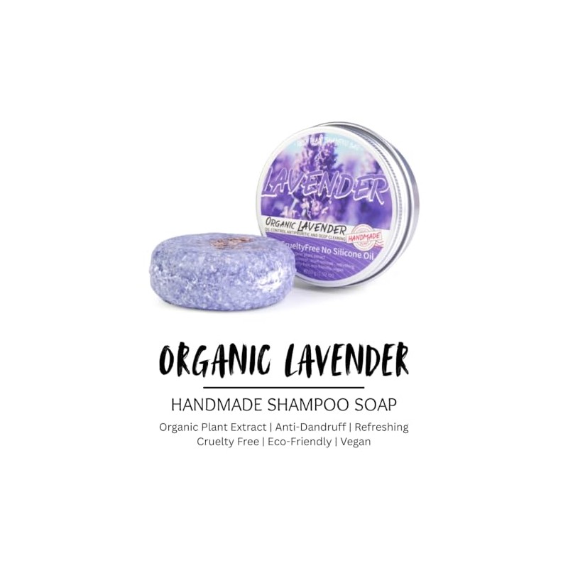 Natural Shampoo Bar | Sulfate-Free Vegan Solid Shampoo for Dandruff Relief & Scalp Health | Coconut, Olive & Camellia Oils, Shea Butter, Tea Tree & Lemon | 80g (One Size 80g, Lavender)