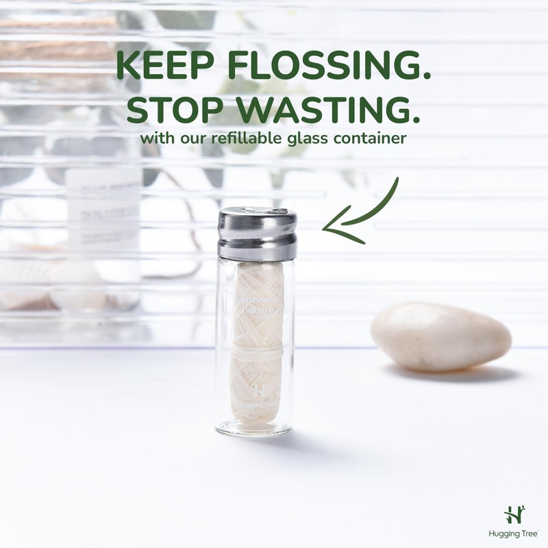 - KEEP FLOSSING. STOP WASTING: The refillable glass dispenser that comes with the silk floss is built for reuse with our floss refills. Just refresh, refill, and repeat.