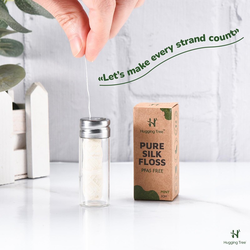 - BEYOND ORDINARY FLOSS: Hugging Tree’s silk floss is crafted from fine mulberry silk fibers, engineered for effective interdental cleaning. Its tensile strength is precisely calibrated to effortlessly disrupt biofilm and plaque in hard-to-reach spaces. We’ve coated it with plant-based candelilla wax for extra-smooth gliding. With a burst of organic peppermint oil, your mouth stays fresh long after you’re done flossing.