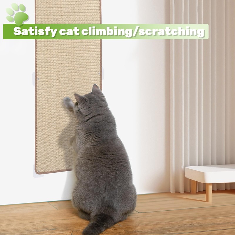 Natural Sisal Cat Wall Climbing Carpet, Wall Scratcher Carpet Mat Pad, Cat Climbing Wall, Tall Scratching Post, Wall Floor Couch Sofa Protector, Scratching Pad for Indoor Cats (78.7" Lx15.7 W, 1PC)
