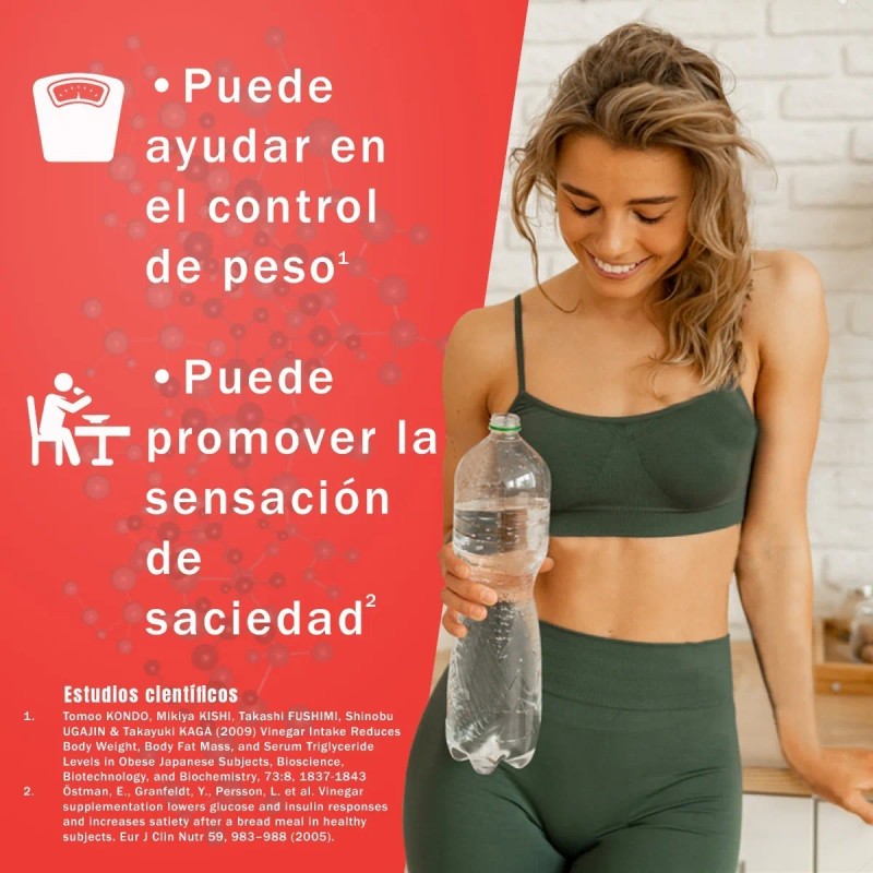 La versión en cápsulas facilita la ingesta del vinagre de manzana. Se recomienda tomar de 1 a 3 cápsulas en ayuno para contribuir a la reducción del apetito por períodos más extensos.