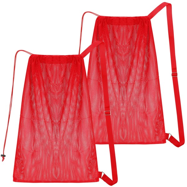 NATURAL STYLE 2 Packs Swim Bag Mesh Drawstring Backpack Oversized 18" x 26", Large Mesh Drawstring Backpack for Beach, Swimming, Gym, and Workout Gear (Red)