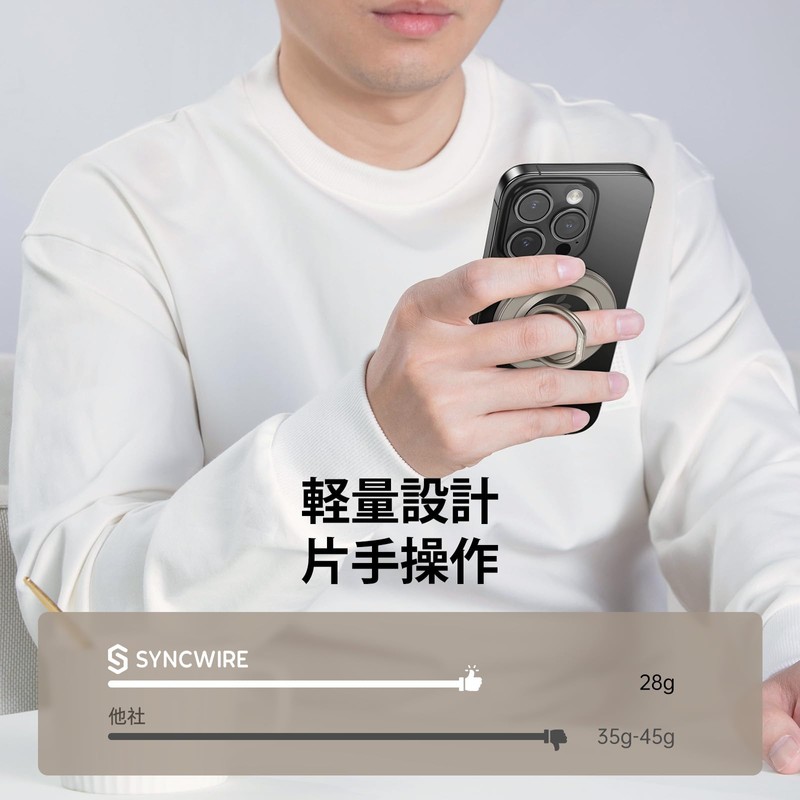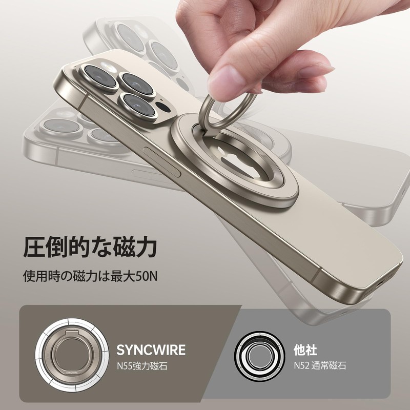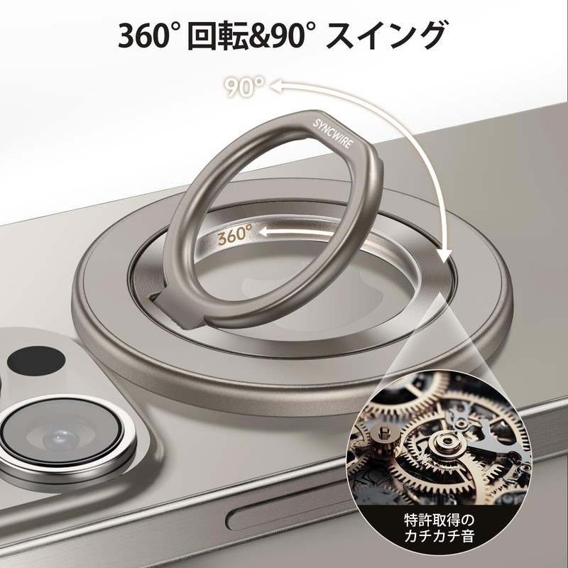 [Natural Titanium Color] Syncwire MagSafe Ring - Double-sided Magnet, Smartphone Ring, 360° Rotation, Super Strong Magnetism, Mag-Safe Ring, Magnet, Bunker Ring, Thin, Adjustable Angle, Easy to Put on