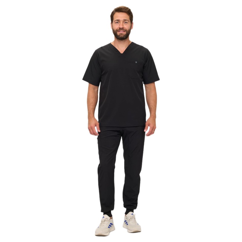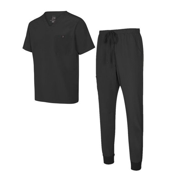 Natural Uniforms Mens Luxe Stretch Jogger Scrub Set (Black, Large)