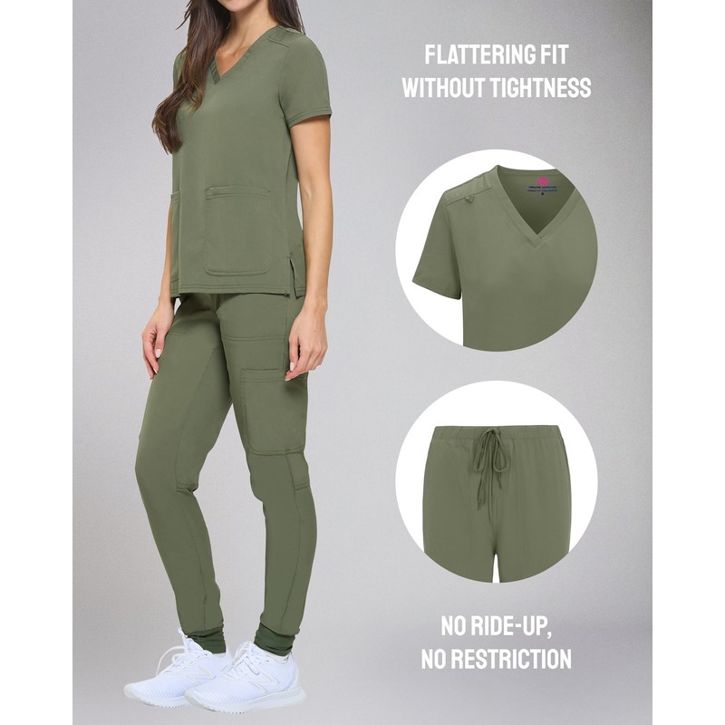 Natural Uniforms Womens Essential Cool Stretch Jogger Scrub Set (Olive, Small)