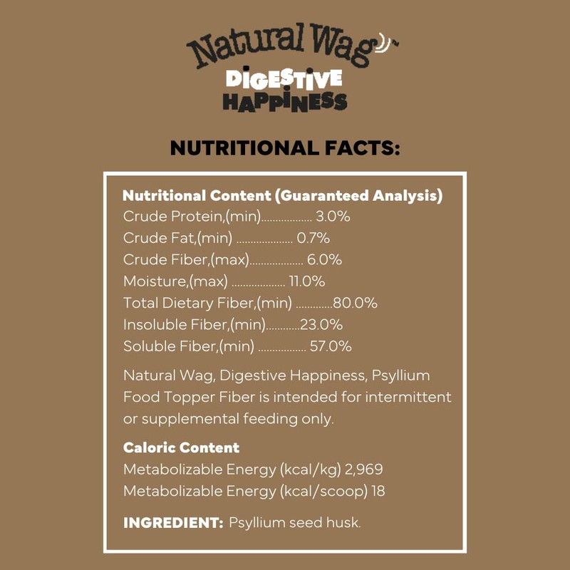 Free from artificial ingredients, Natural Wag Digestive Happiness uses 100% natural psyllium husk fiber, providing a wholesome, clean solution for your dog's digestive needs.