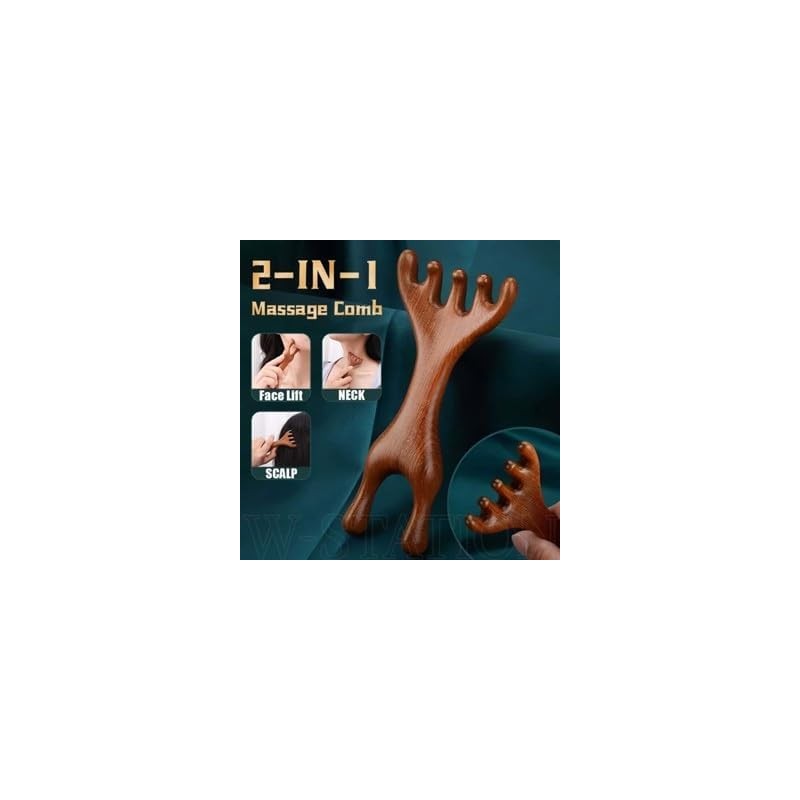 Natural Wood 7-Finger Antler Hair and Scalp Massager | Wood Design Multi-Func...