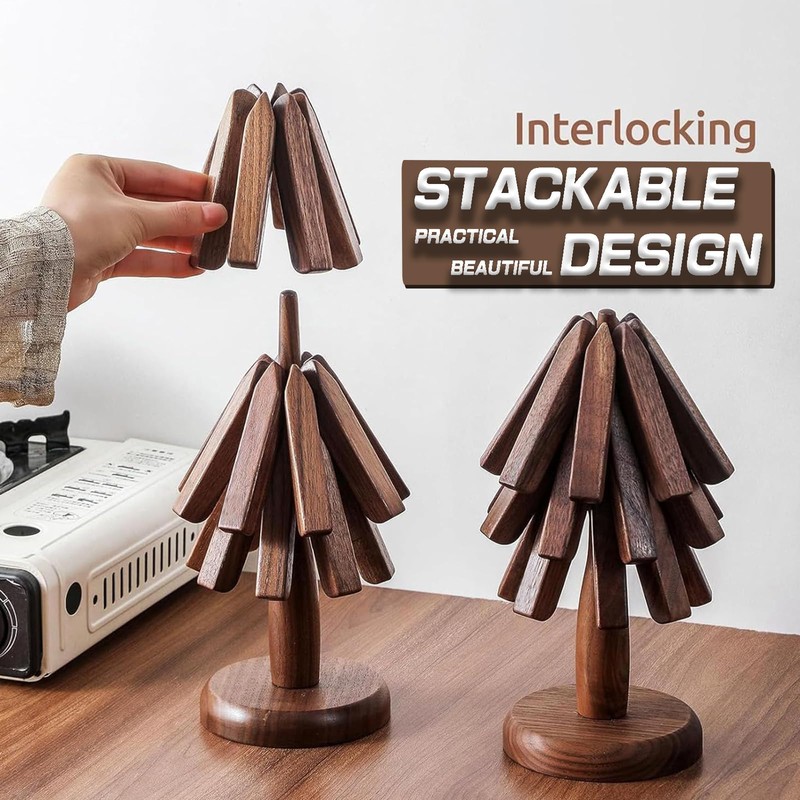 - Widely Used:This heat-resistant trivet tree mat set comes in a gift box, making it an excellent choice as a kitchen gift. Trivet tree is ideal for wives who value both functionality and aesthetics, whether it's for Christmas or a housewarming party.Black walnut wooden trivets for hot pot and pans or instant pots, or even as a coffee pot mat.