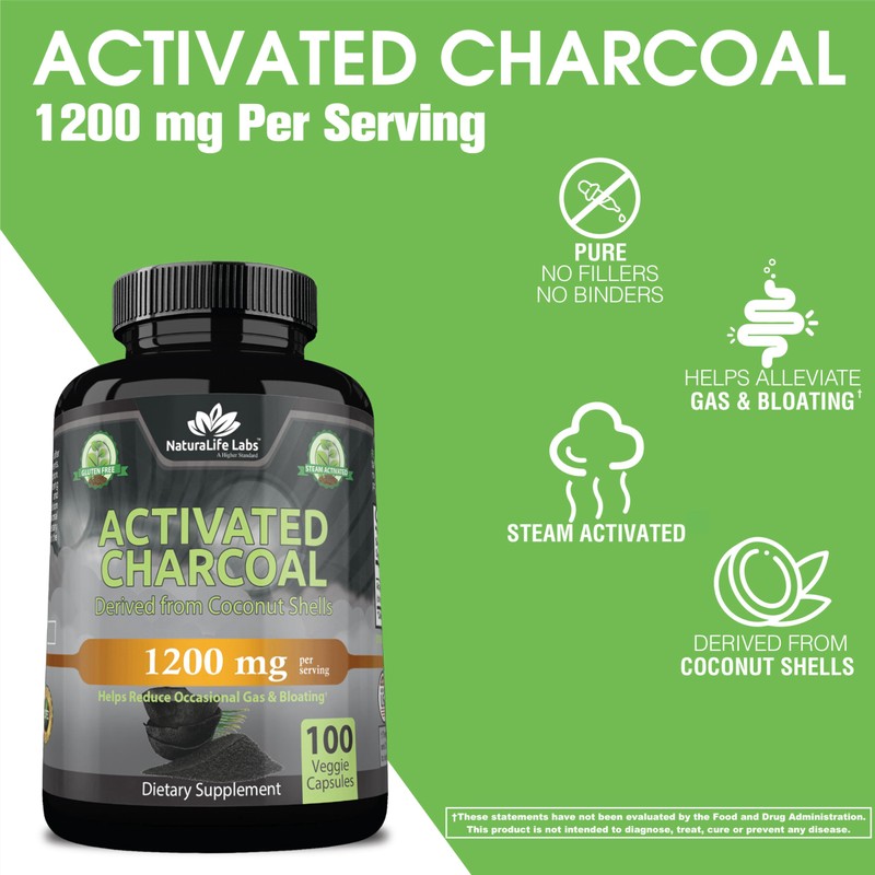 - ??POTENCY 1200 MG per serving delivering activated charcoal derived from coconut shells with 100 vegan capsules. Made with pure activated charcoal using a hot gas process