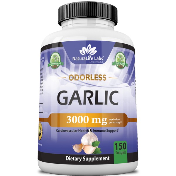 NaturaLife Labs A Higher Standard Odorless Garlic 3000 mg per Serving Immune System Support - 150 Soft gels