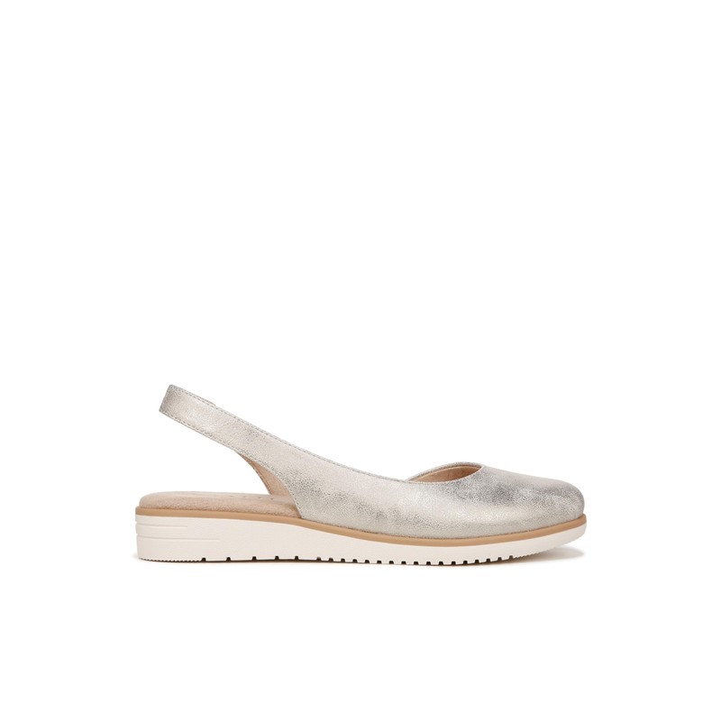 • Slingback flats for women with D’Orsay side styling and a slight wedge heel