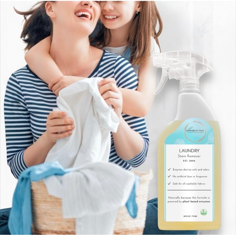 naturally It's clean Enzymatic Laundry Stain Remover Spray and Odor Eliminator | Fabric Safe Stain Sprayer Enzyme Cleaner to Remove Coffee, Grease, Makeup, Ink, Wine, Stubborn Stains and Odor | 2 Pack