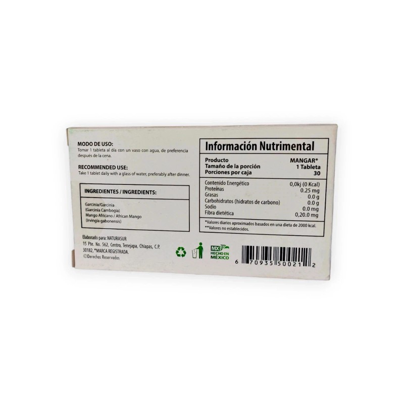 Naturasur MANGAR AFRICAN MANGO AND GARCINIA MANGO 30 TABLETAS 500 MG Live NATURAL