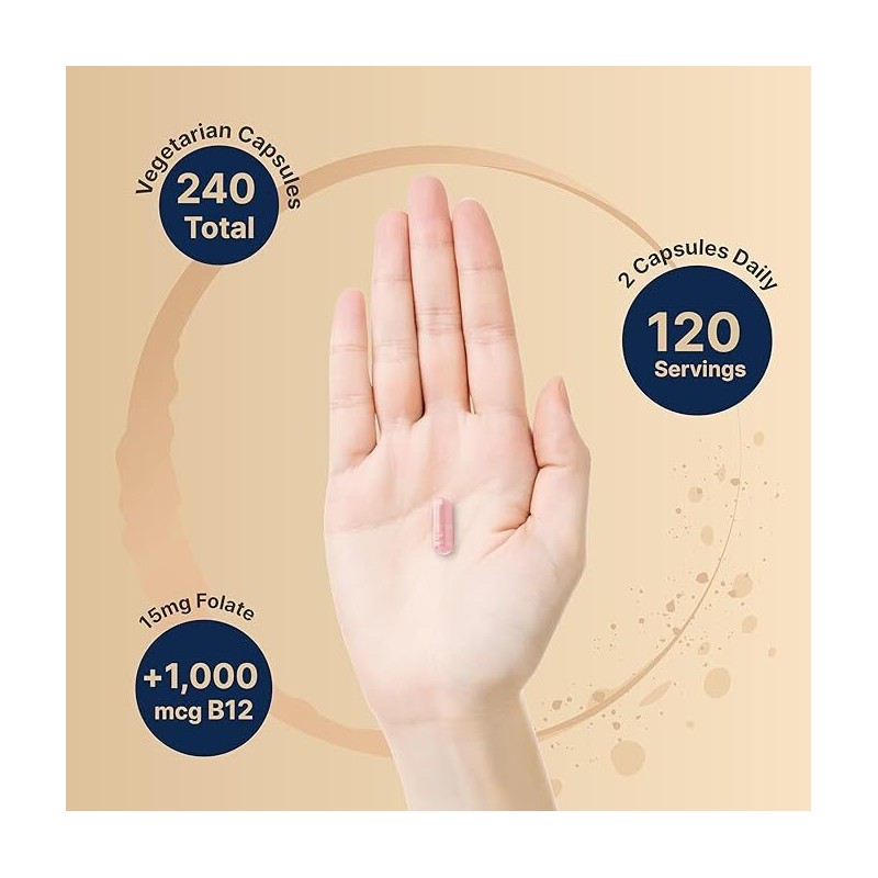 Nature Bell NatureBell L Methylfolate 15mg (5-MTHF) with Methyl B12 1,000mcg, 240 Vegetarian