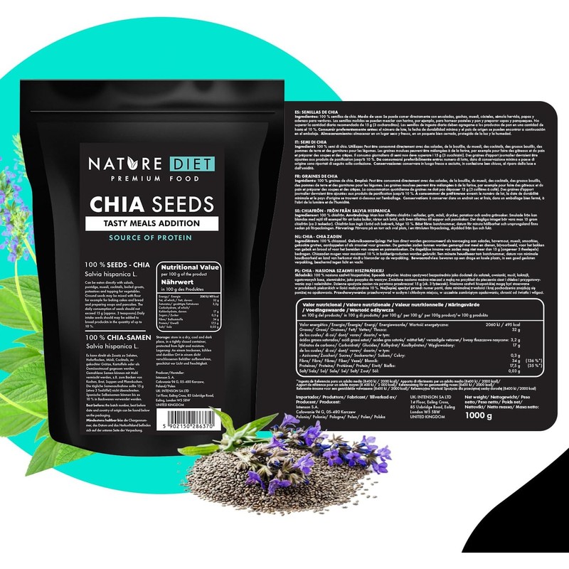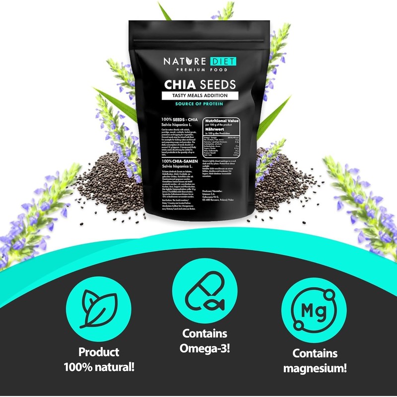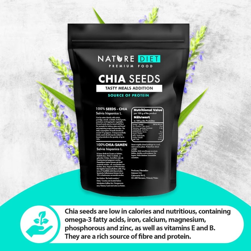 Nature Diet - Chia Seeds 1000 g | Salvia Hispanica | High in Omega-3 | Source of Fiber