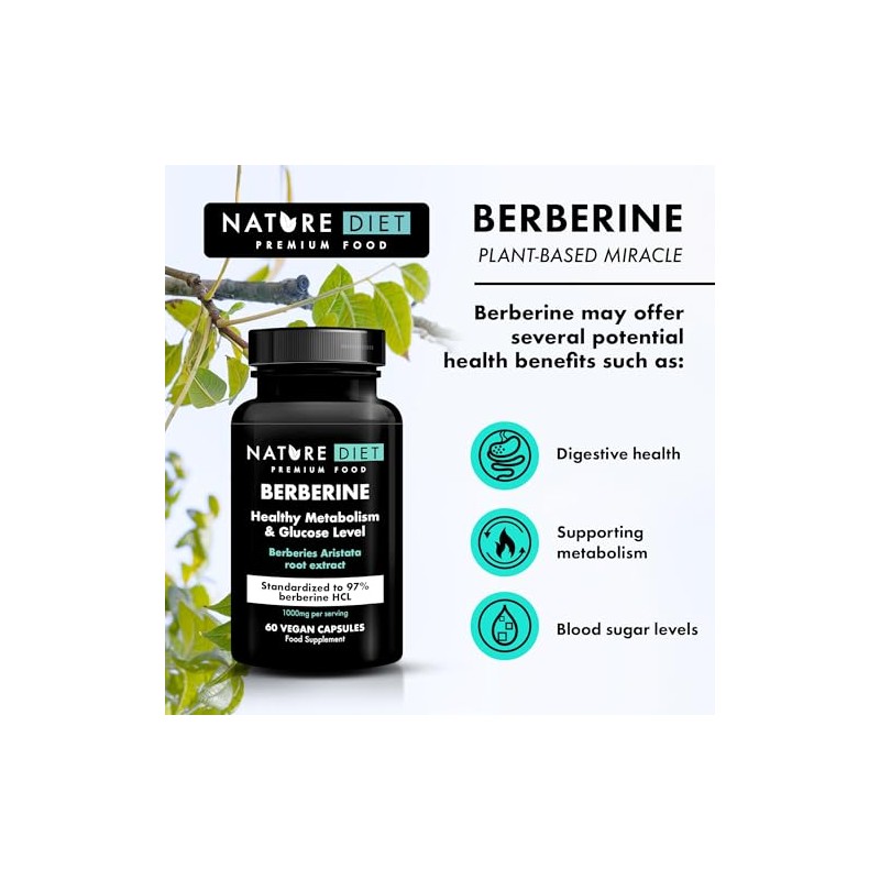 - CLEAN, SAFE INGREDIENTS: Nature Diet Berberine is manufactured with high-quality ingredients, free from allergens and contaminants, ensuring a safe supplement for daily use.