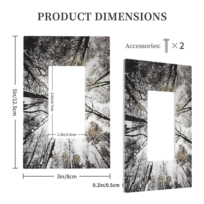 Nature Forest Grey Tree Single Rocker Light Switch Cover 1-Gang Rocker Decorative Wall Plates Cover Black White Gray Gold Leaf GFCI Electrical Switchplate Faceplate for Home Decor