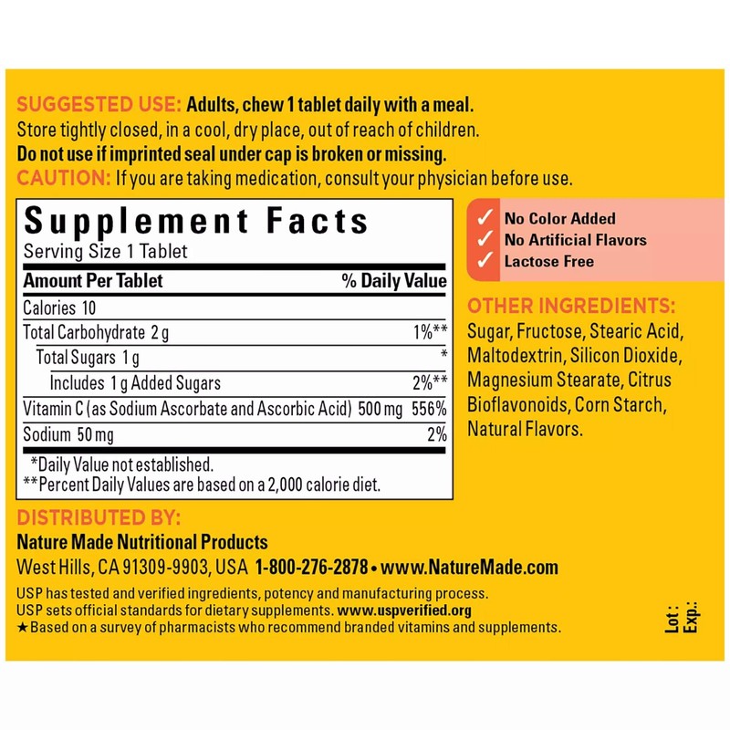 Nature Made Chewable Vitamin C 500 mg Tablets, 60 Count to Help Support the Immune System† (Pack of 3)