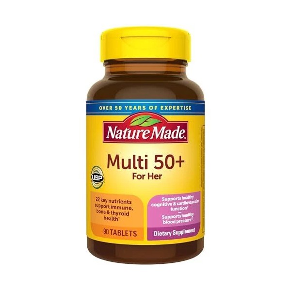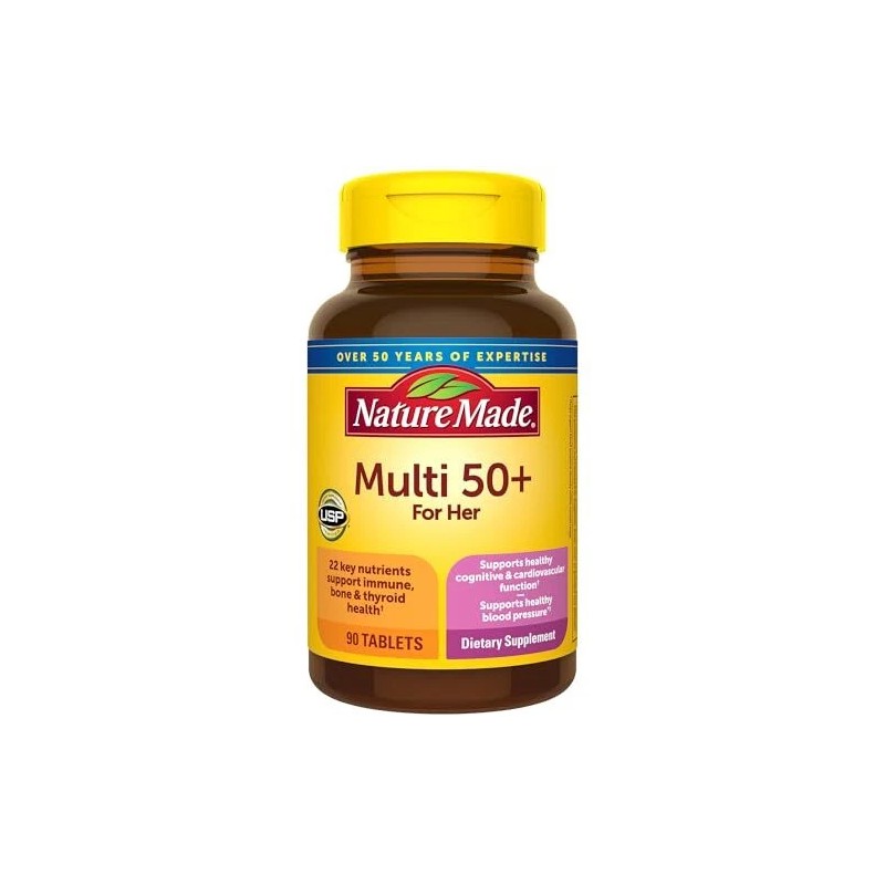 - Nature Made Multi for Her 50+ women's multivitamin tablet supports healthy cognitive and cardiovascular function, healthy blood pressure (2) and healthy aging
