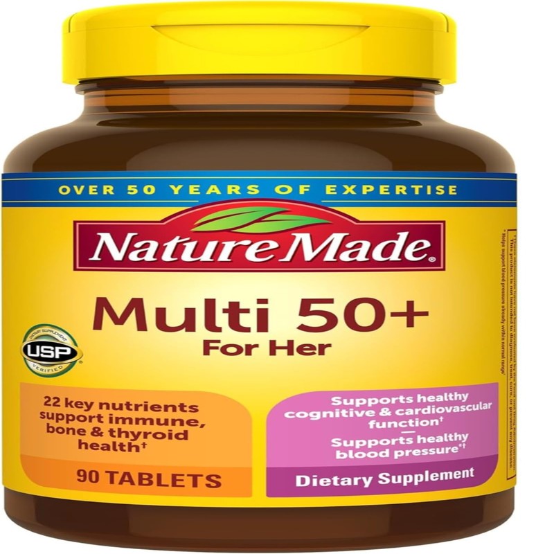 Nature Made Women's Multivitamin 50+ Tablets with Vitamin D, 90 Count for Daily Nutritional Support