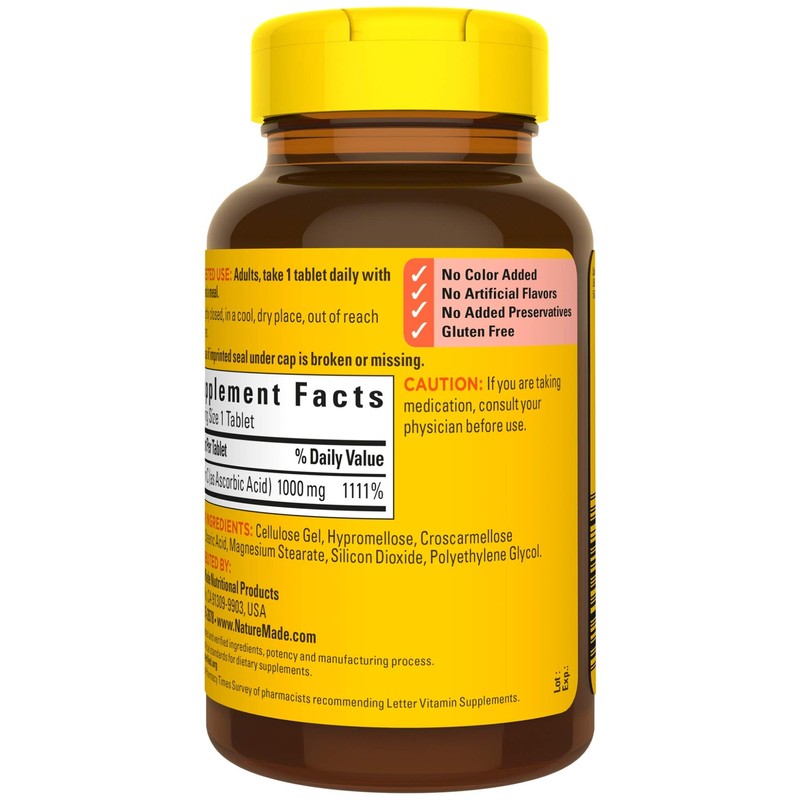 - Contains a 100-day supply of Nature Made Vitamin C 1000 mg Tablets, 100 tablets per bottle.