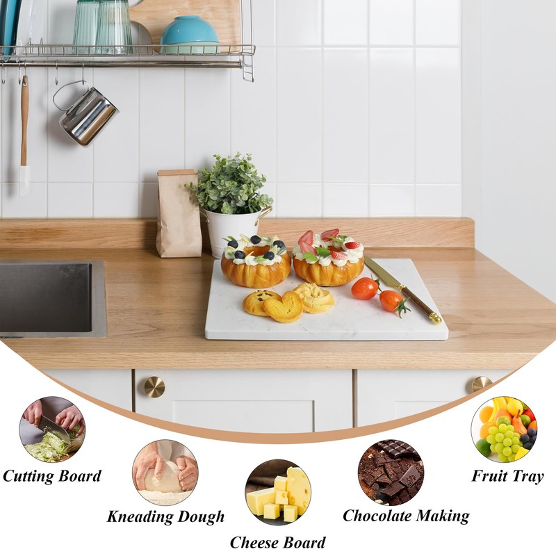 - Versatility-Marble Slab with 5 non-slip silicone feet and 5 lb weight provides a stable use. Ideal choice for charcuterie board, pastry borad, cheese board, bed tray and guest server tray, etc.