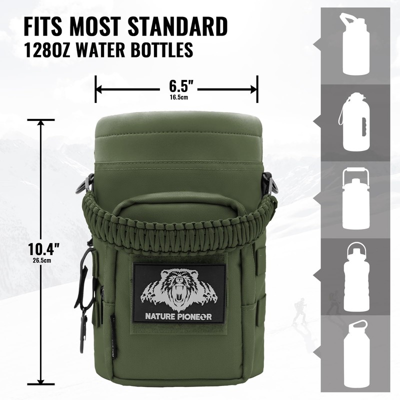 NATURE PIONEOR 32 64 128oz Tactical Water Bottle Pouch, Multi-Function Tactical Water Bottle Bag with Adjustable Shoulder Strap, Half/One Gallon Molle Strap Carrier Holder