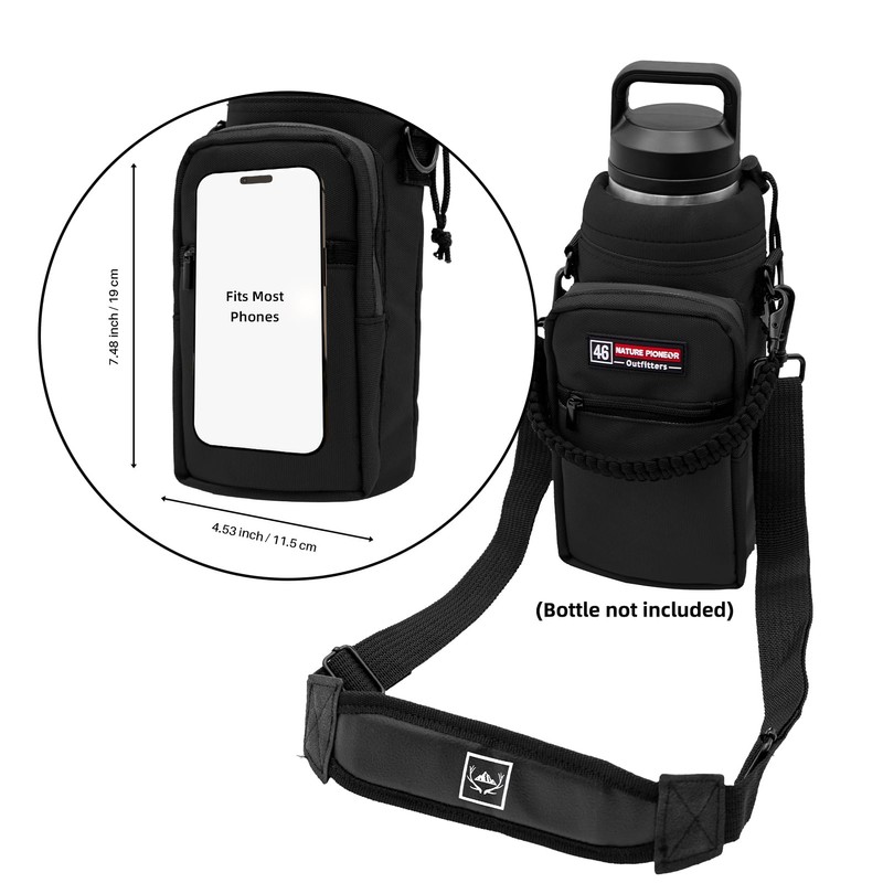 NATURE PIONEOR Insulated Water Bottle Holder with Shoulder Strap for 46oz Sports Water Jugs Bottles, Carrier/Pouch Sleeve for Outdoor Camping, Hiking,Gym