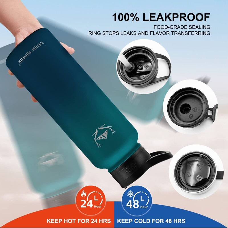- 【SUPER DEAL COMBO】- You’ll get 1 x 40oz insulated water bottle, 1 x water bottle holder, 1 x Gift Box. Different lids add possibilities to use anywhere at gym, concerts, picnics, camps. NATURE PIONEOR water bottle with delicate gift box works as a perfect gift for your loved ones