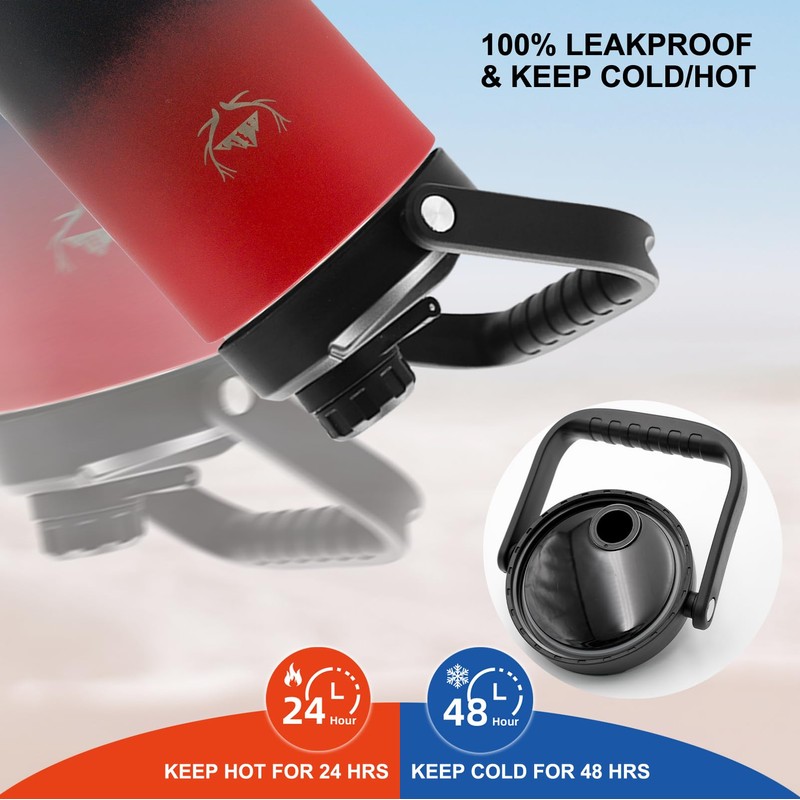 - 【DOUBLE-WALL VACUUM INSULATION】 - We insulated water bottles adopt double-layer insulation wall design and vacuum sealing. This means you can enjoy your favorite hot and cold drinks for a long time, no matter what weather you're in. It can keep hot drinks hot for 24 hours and cold drinks cold for 48 hours! Advanced technology prevents heat transfer to outer wall, protects your hands from the temperature of beverage.