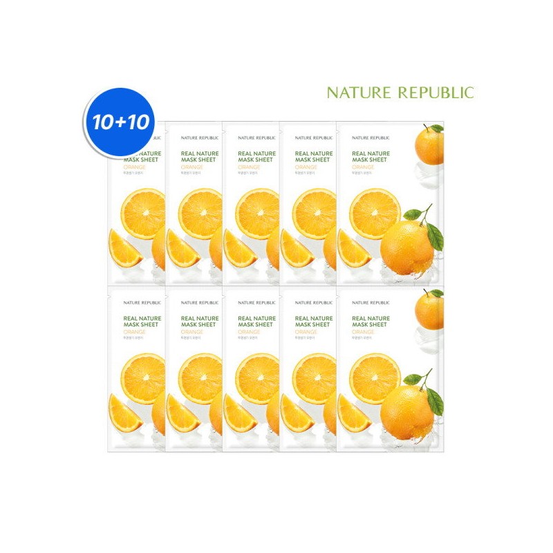 Nature Republic 10+10 Real Nature Mask Pack (Orange 20 sheets) / 네이처리퍼블릭 10+10 리얼 네이처 마스크팩 (오렌지 20매)