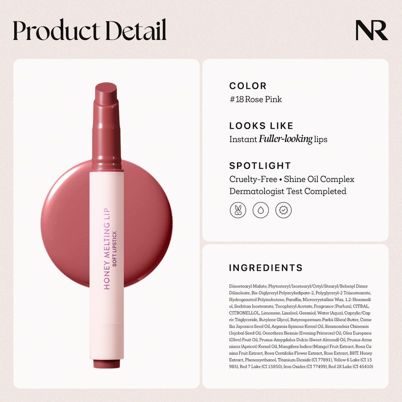 Nature Republic HONEY MELTING LIP (18 ROSE PINK) SOFT LIP STICK, Hydrating Gloss, Moisturizing balms, Sheer tint, Shine & Nude, Glowy Finish, korean make up