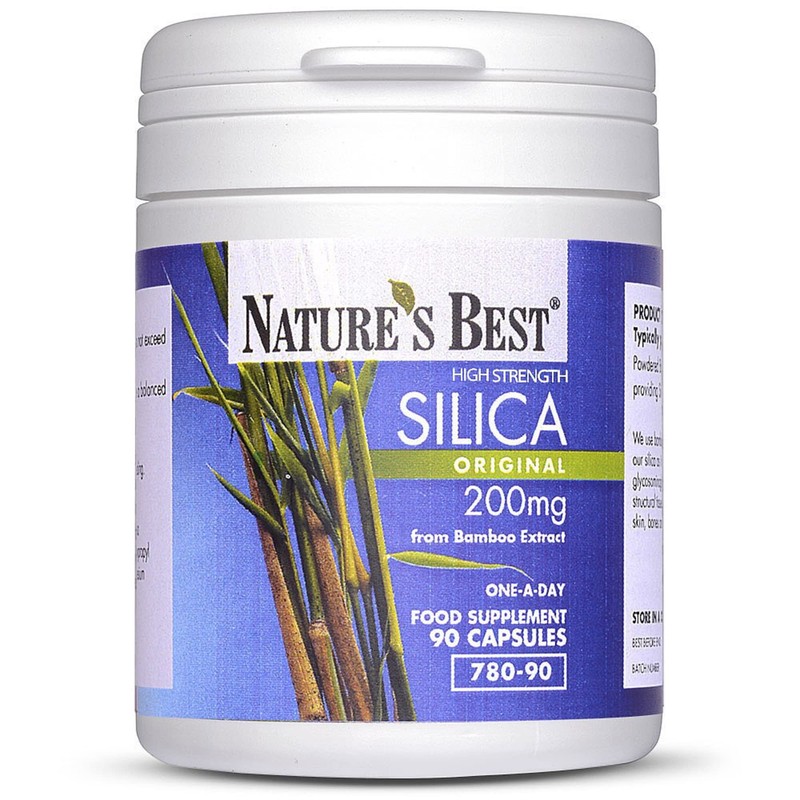 NATURE'S BEST Silica 200mg | High Strength Naturally Sourced Silica Supplement | for Skin Health and Mobility | 90 One-A-Day, Vegan Capsules | from Bamboo Extract | UK Made