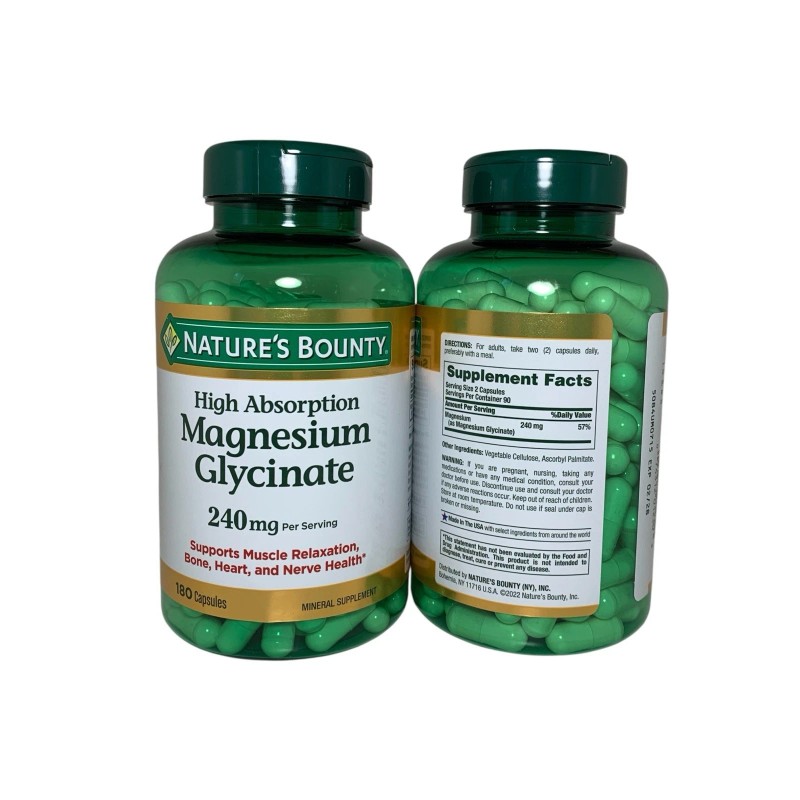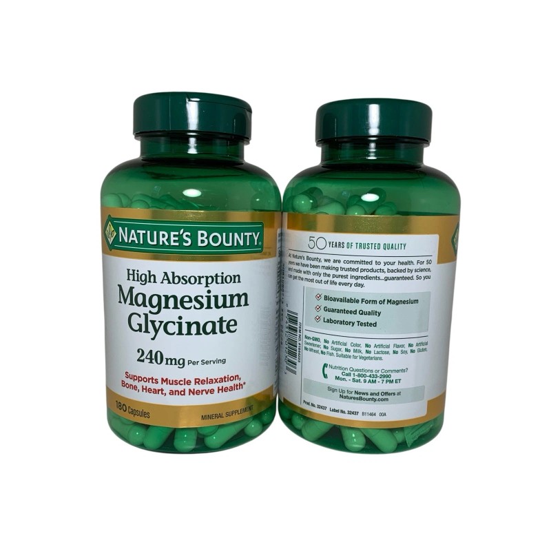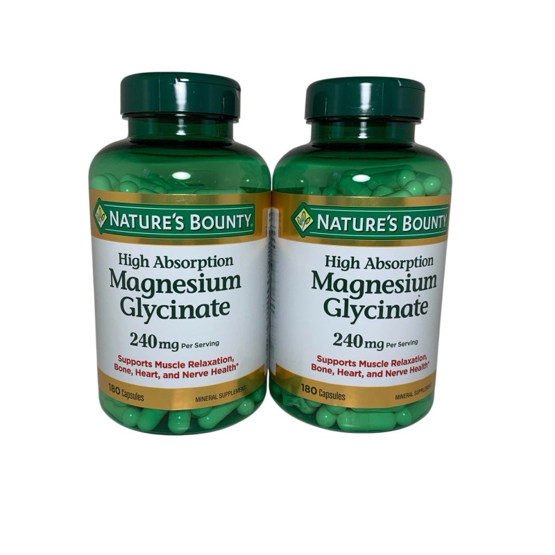 Nature’s Bounty Magnesium Glycinate 240 mg, 180 Capsules (2 Pack), Exp:02/28