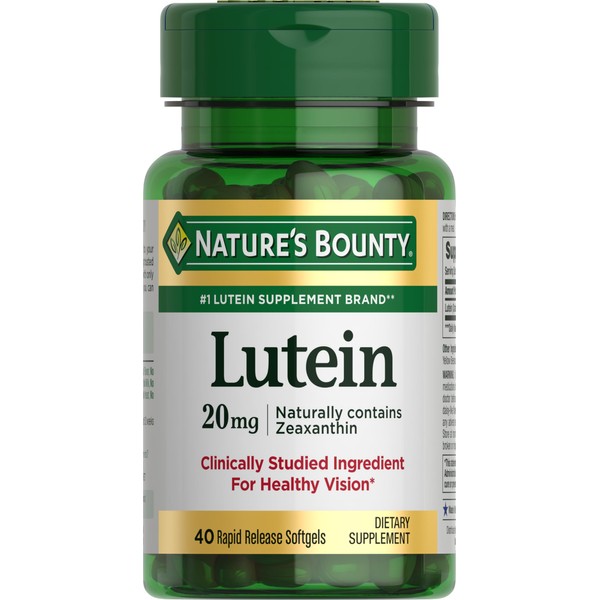 Nature's Bounty Lutein Pills, Eye Health Supplements and Vitamins, Support Vision Health, 20 mg, 40 Softgels