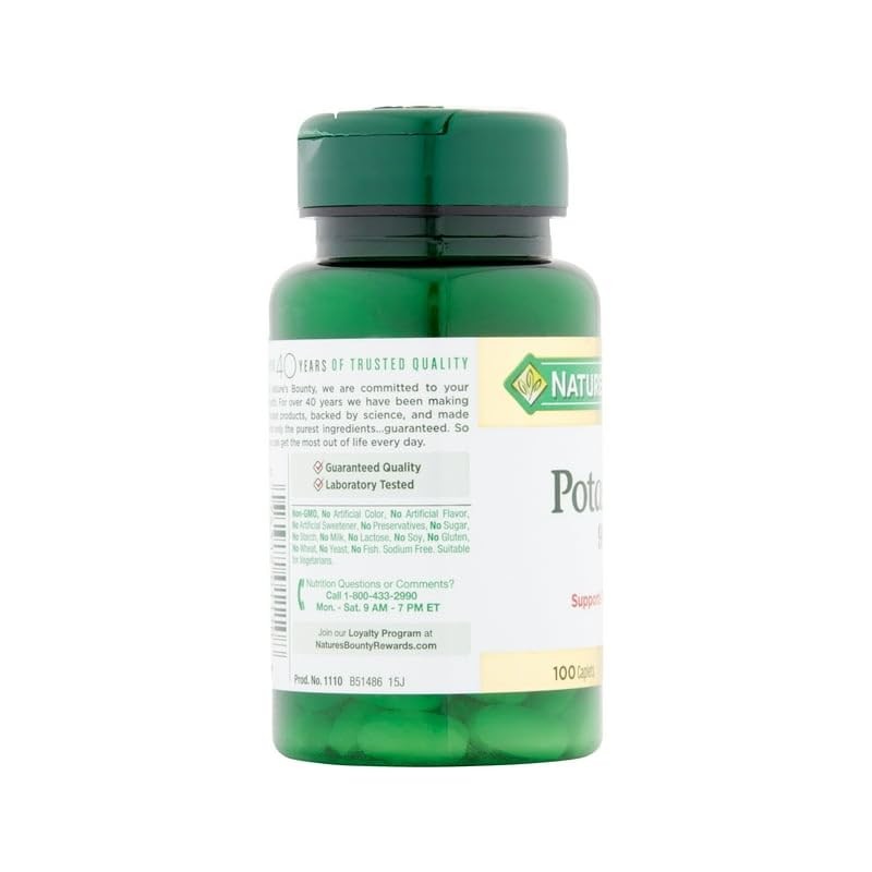 - INCLUDES: 100 caplets per bottle of Nature's Bounty Potassium Gluconate 99 mg