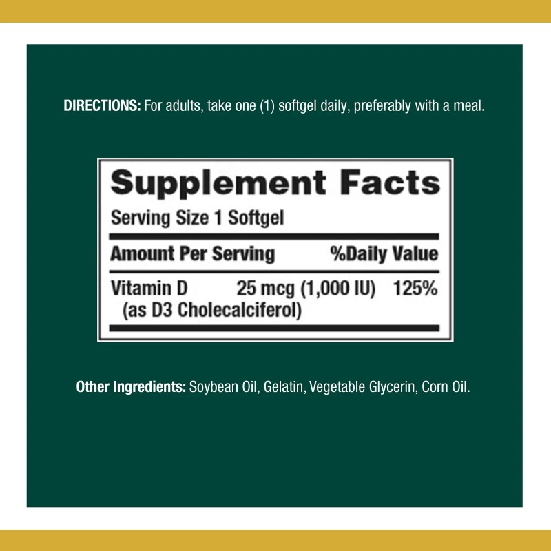 Nature's bounty vitamin d - the "sunshine vitamin" is an essential nutrient that the body creates by converting cholesterol in the body via sunshine. However, today's culture of cubicles, sunscreen, and near-round-the-clock indoor living minimizes our exposure to natural sunlight for the needed period of time for vitamin d to form. Supplementing with nature's bounty vitamin d3 is an easy way to increase your daily intake of this important nutrient.