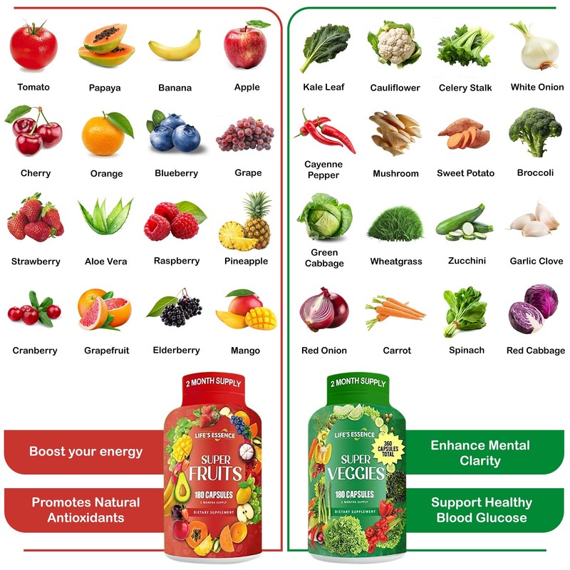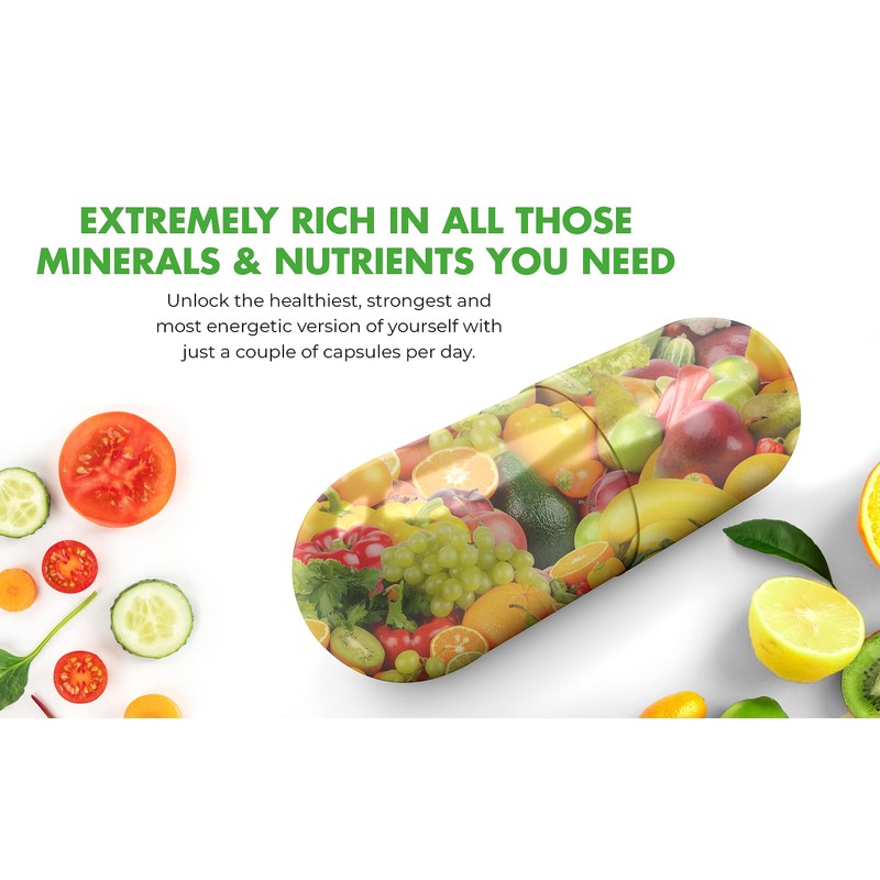 - THE NATURAL WAY TO PROTECT & ENHANCE YOUR OVERALL HEALTH: The best way to cater to your body's nutritional requirements is to enjoy a balanced diet packed with fruits and veggies. And our super fruits and veggies capsules will do precisely that! Including a great variety of amazing fruits, leafy greens, and vegetables, each and every capsule will nourish your body in the most efficient, all-natural way