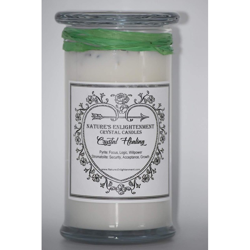 Nature's Enlightenment Grounding Crystal Candle - Handmade Soy Candle-Pyrite & Stromatolite Crystal- Gift Giving