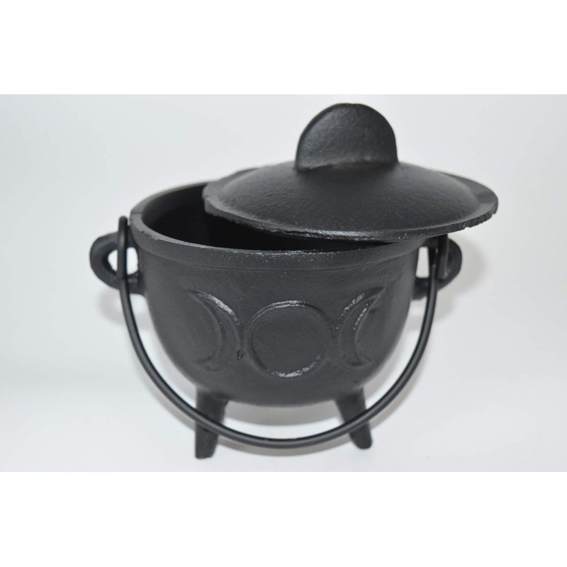 Nature's Enlightenment Large Cast Iron Triple Moon Cauldron for Incense, Resin,Cones