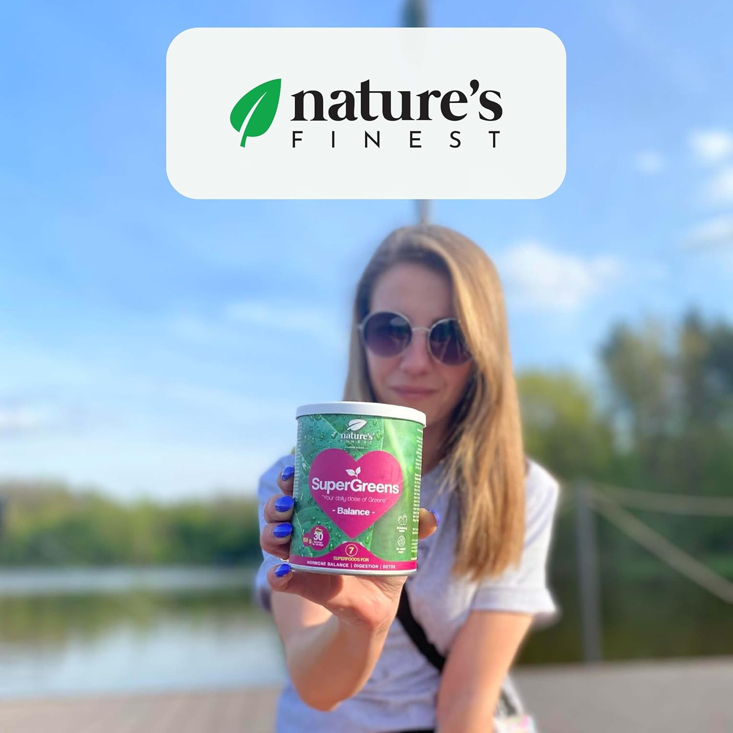 Nature's Finest Supergreens Balance - Veganes Proteinpulver mit Gerstengras, Weizengras, Maca, Ashwagandha & Chlorella - Natürliche Grüne Helfer für Vitalität & Wohlbefinden - 150 g