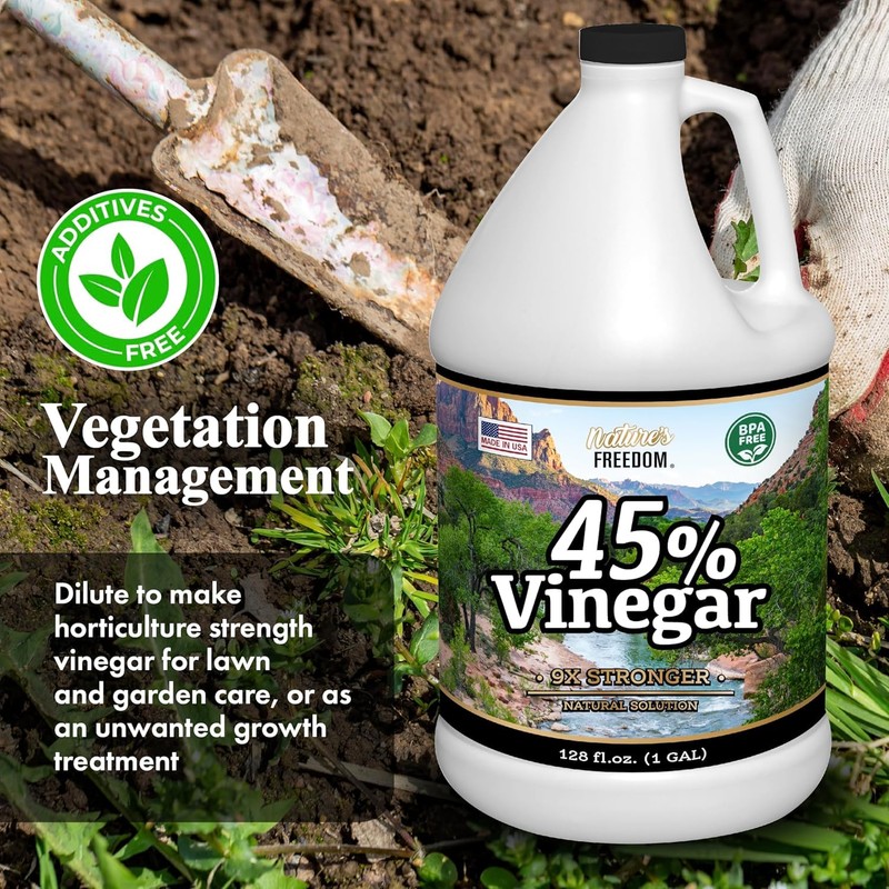 Nature’s Freedom 45% Concentrated Vinegar is a powerful cleaning solution designed for both household and outdoor use. Each unit includes a full gallon of ultra-concentrated vinegar along with a comprehensive vinegar cleaning book filled with over 40 practical applications. Use it on patios, paved areas, garden borders, and around the home for jobs that require serious strength. With no added dyes, scents, or fillers, it delivers reliable results with simplicity and purpose. Perfect for those who want maximum performance in one complete package.