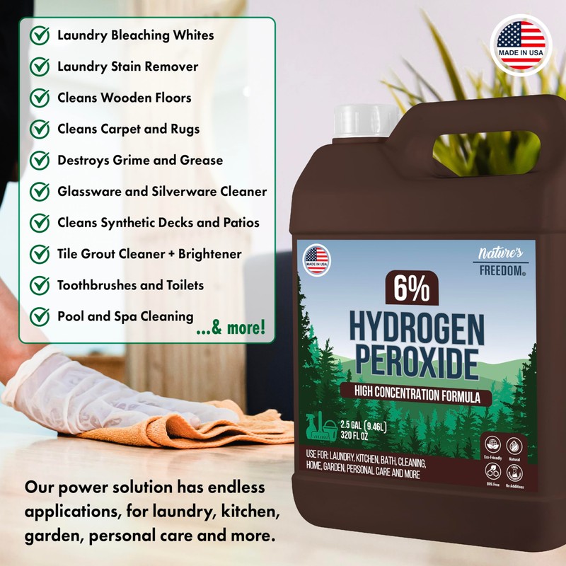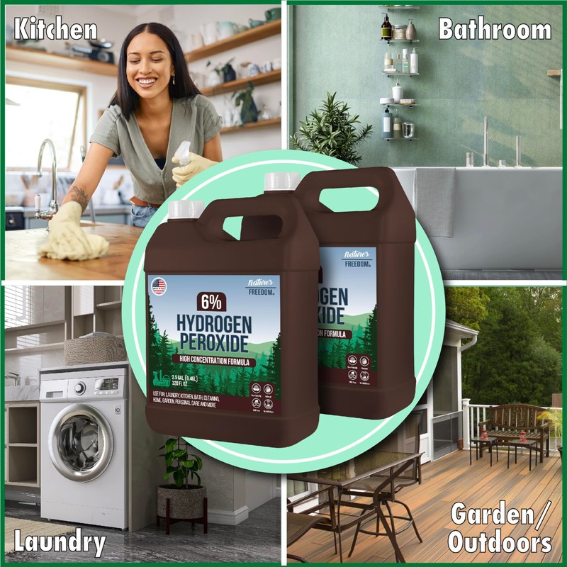 Nature's Freedom Nature's Freedom Hydrogen Peroxide 6% Concentrate, H2O2 and Purified Water Only, 2.5 Gallons